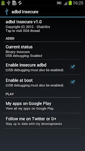 [root] adbd Insecure 2.00 ditawarkan oleh Chainfire adalah jenis aplikasi Alat yang kompatibel dengan android 2.1 dan lebih tinggi,You may also like:: Aplikasi nke Display untuk Samsung young